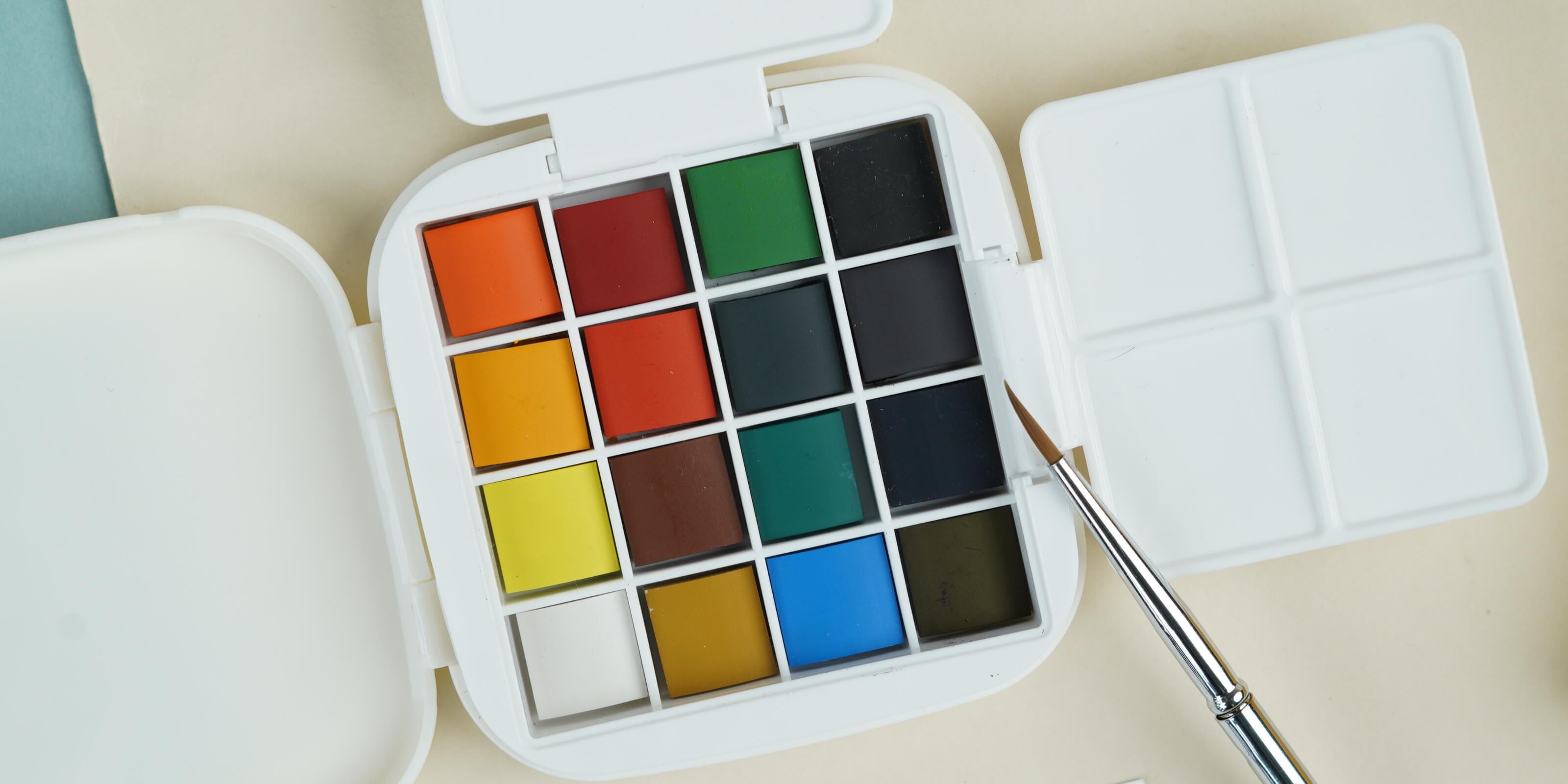 16-colour watercolour paint set; 80mm*80mm watercolour paper book; portable watercolour pen