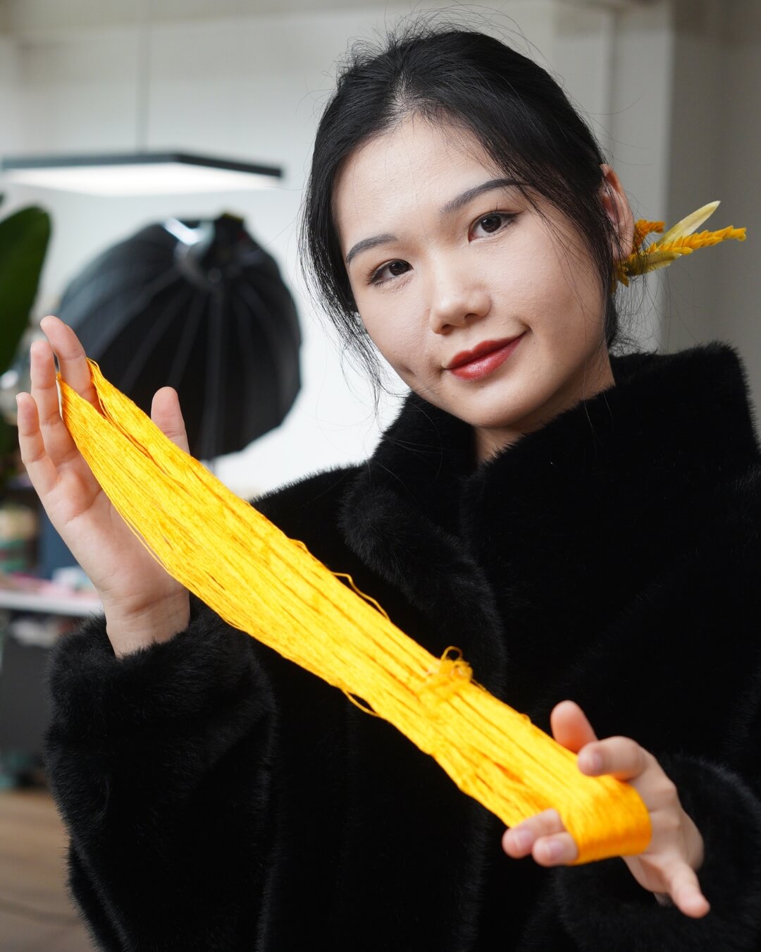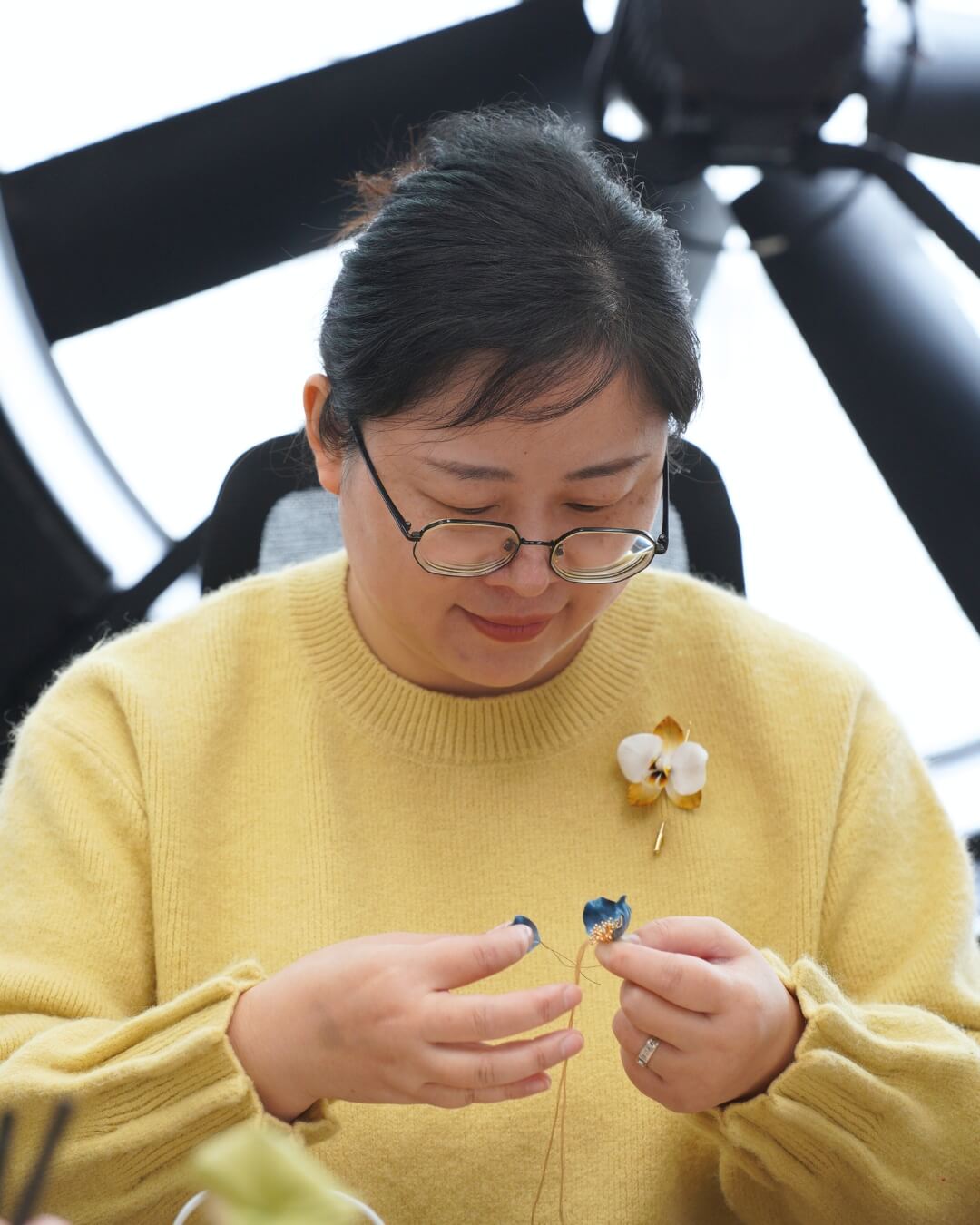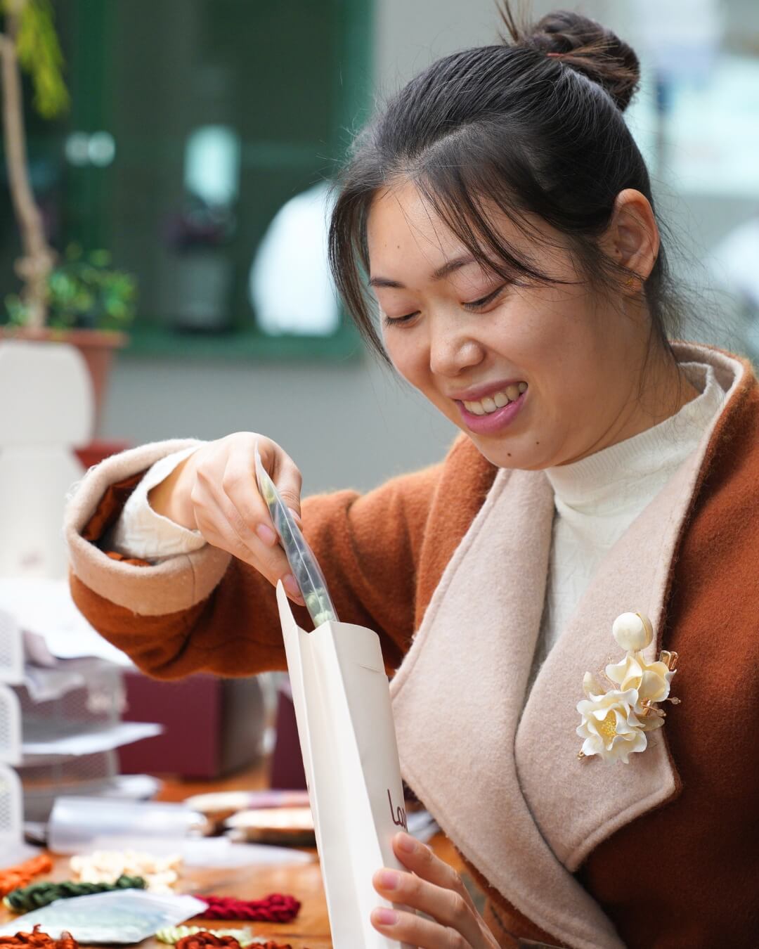 Her daughter is her biggest fan, asking about her work almost every day and celebrating every new flower Yue makes. Yue has worked in big cities across China, but over the years she found that nothing matters more than family, peace, and doing something she genuinely loves. She jokingly calls her new chapter “lying flat (躺平),” but to us she’s not lying down at all — she’s standing exactly where she needs to be.